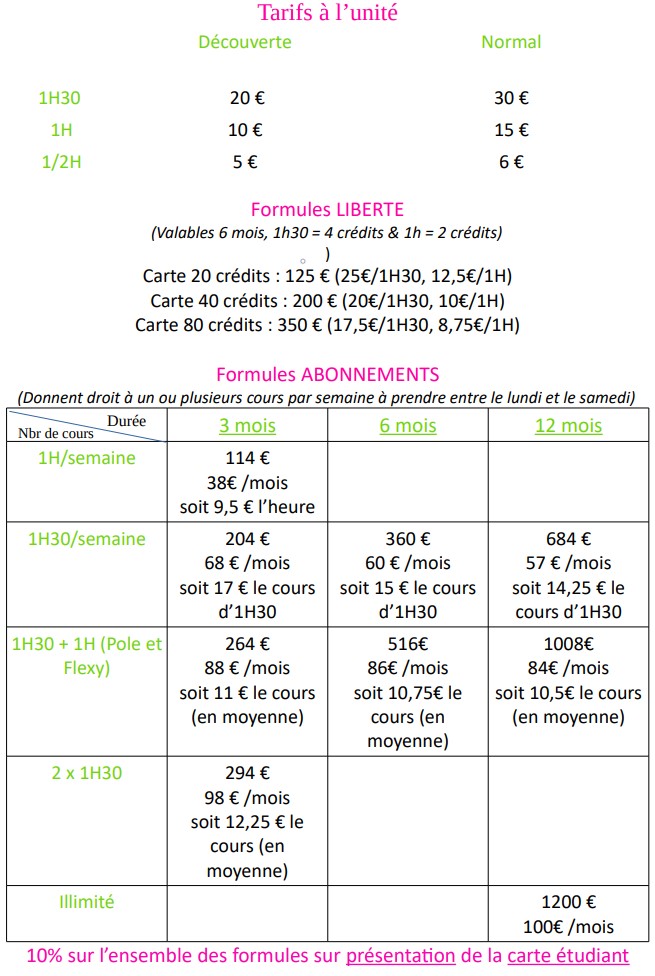Abonnements de 3 à 12 mois pour un ou plusieurs cours par semaine- Abonnements 3-6-12 mois.